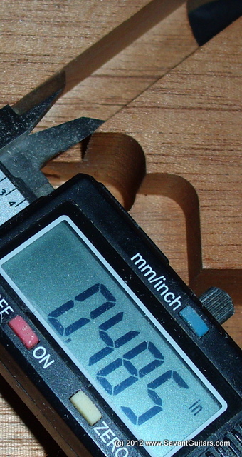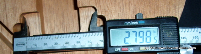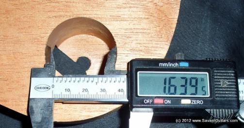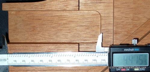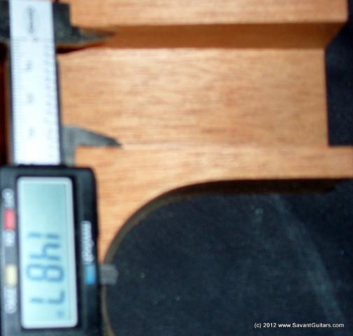 The following pics are showing the dimensions of various parts of the mahogany body (digital caliper set to imperial system/inch).