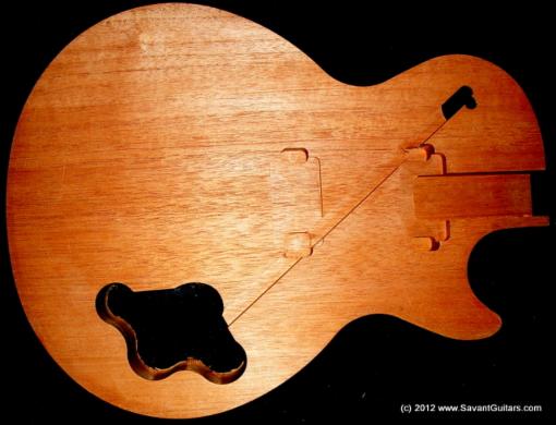 We think it is not interesting to show the CNC-routing of a mahoganie body core, therefore we will beginn with the finished body and add here some measurements for spreading the vintage correct infos of this part of the guitar.