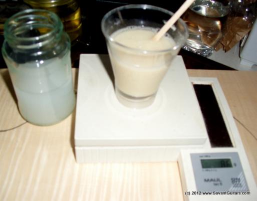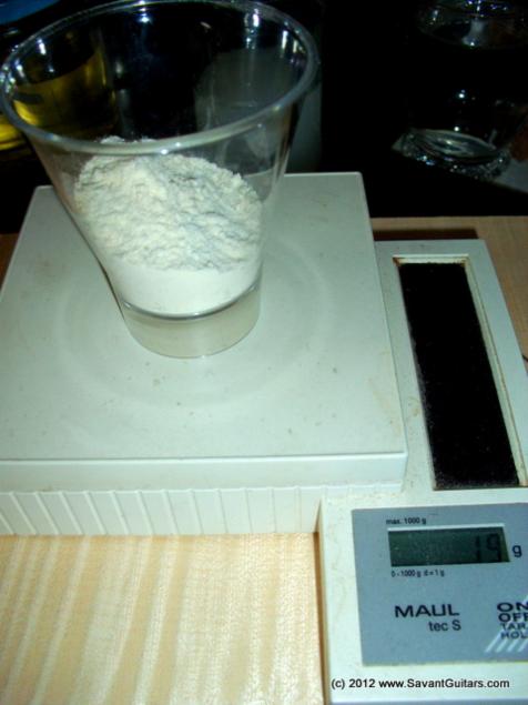 At least 10% hardener will be needed, instead of 15 gr. we take a bit more (19 gr.).