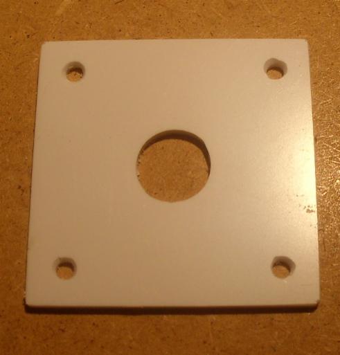 The Jackplate was made of 1.5mm thick ABS with different (lighter) color than the other plastics (bone-white), 35mm outline length (with 4.6mm radius), 26mm distance of holes (center-center), inside hole is 9,6mm, outline and inside hole were punched, the 4 screw holes were drilled, 15 Euro/plate. (+shipping)