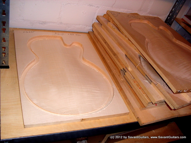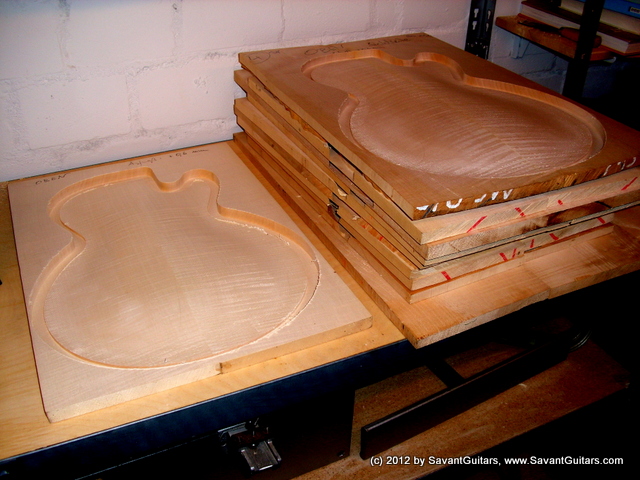 We start the build with selecting the tops from a bunch of CNC´d maple tops from various origins, incl. Eastern (Hard) maple and finest European mountain maple:
