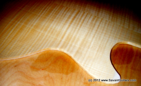 The selected flamed maple top is Eastern maple - but form Eastern Europe ;-) ... this top is acer pseudoplatanus and therefore not fully vintage correct, but if the customer does not care, why should others...