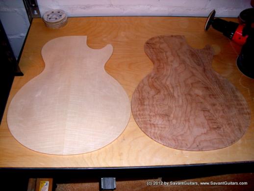 At this stage the sanding of the tops is done to the point that any further sanding can be made by hand after the top is glued onto the body later: