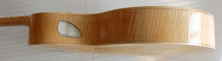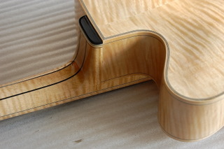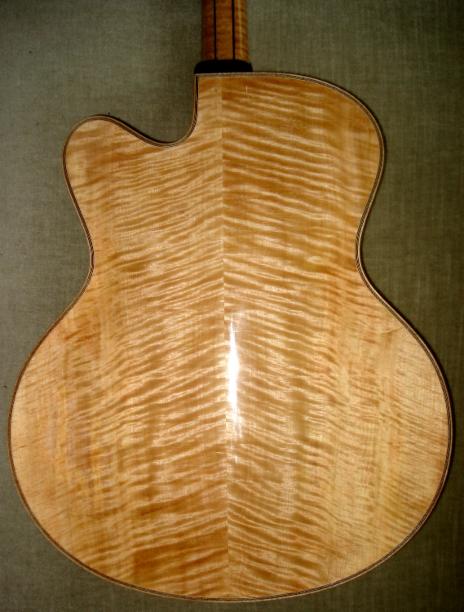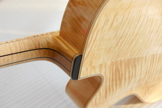 - Multiple binding of flamed maple and ebony around the top and back, heelcap and f-holes